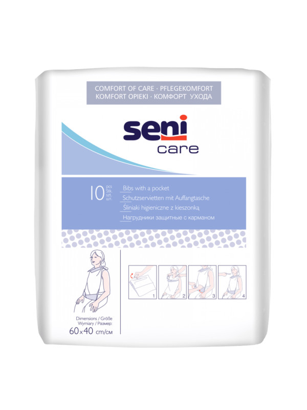 • Idealne podczas karmienia – Śliniaki Seni Care sprawdzają się doskonale podczas każdego posiłku, chroniąc odzież pacjenta przed zabrudzeniami oraz rozlaniem płynów. Dodatkowa kieszonka skutecznie zatrzymuje okruszki i resztki jedzenia, dzięki czemu opiekunowie mogą zachować czystość otoczenia bez potrzeby częstego prania odzieży.