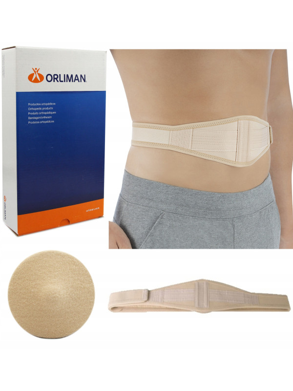 Pas na przepuklinę pępkową O-104 Orliman zakończony delikatnym materiałem frotte po stronie przylegającej do ciała, wyposażony w praktyczny zapięcie na taśmę velcro. W zestawie znajduje się pelota o średnicy 10 cm, która może być łatwo wymieniana. Dzięki temu zapewnia on skuteczny nacisk na obszar pępka, wspomagając leczenie przepukliny pępkowej. Oferuje komfort noszenia i stabilność, co przyczynia się do efektywnego działania w łagodzeniu dolegliwości.