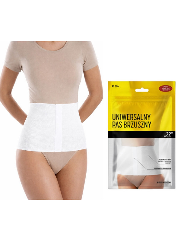 Uniwersalny pas brzuszny Pani Teresa Medica PT 0116 to elastyczny wyrób medyczny przeznaczony do stabilizacji i podtrzymania powłok brzusznych. Stosowany jest przed i po zabiegach operacyjnych w obrębie jamy brzusznej, w profilaktyce i wspomaganiu leczenia przepuklin oraz przy osłabieniu mięśni brzucha. Pas zapewnia równomierny ucisk, wspiera mięśnie i pomaga ograniczyć dolegliwości bólowe w okolicy brzucha oraz odcinka lędźwiowo - krzyżowego kręgosłupa.