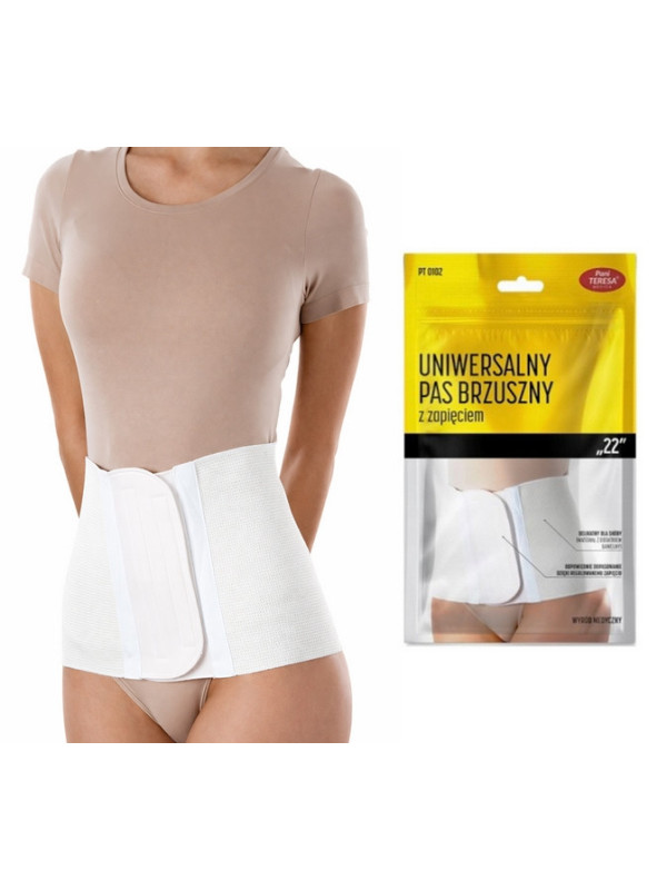Uniwersalny pas brzuszny „22” Pani Teresa Medica to wyrób medyczny przeznaczony do stabilizacji i podtrzymania powłok brzusznych oraz odcinka lędźwiowo - krzyżowego. Pas znajduje zastosowanie przed i po zabiegach chirurgicznych w obrębie jamy brzusznej, przy osłabieniu mięśni brzucha oraz w profilaktyce i wspomaganiu leczenia przepuklin brzusznych, w tym przepukliny pępkowej. Dzięki regulowanemu zapięciu na rzep pas umożliwia indywidualne dopasowanie siły ucisku, co pozwala na komfortowe użytkowanie w ciągu dnia.