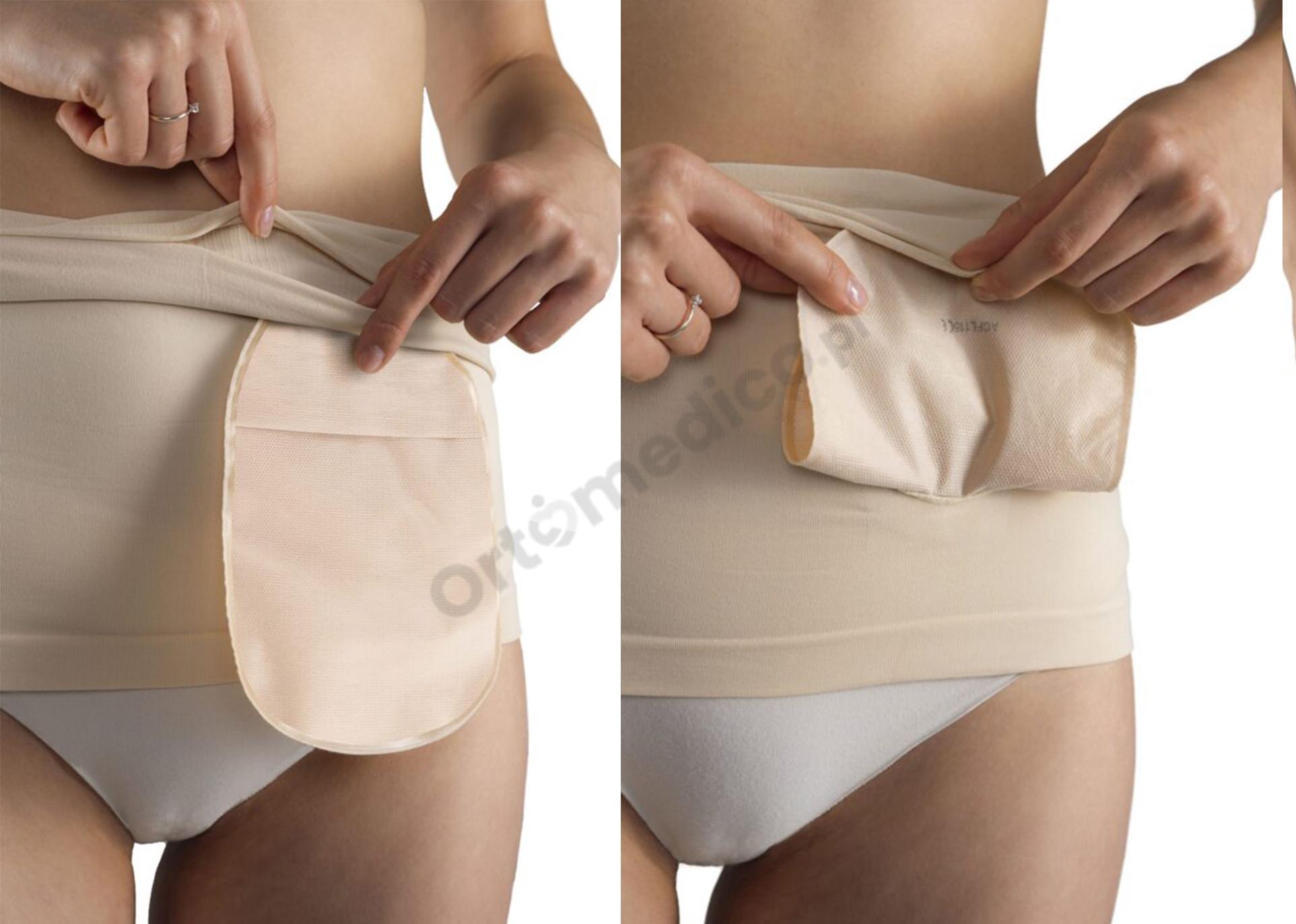 • Opuść zewnętrzną warstwę pasa, tak aby całkowicie zakrywała worek stomijny – to zapewni dodatkową ochronę i dyskrecję.
