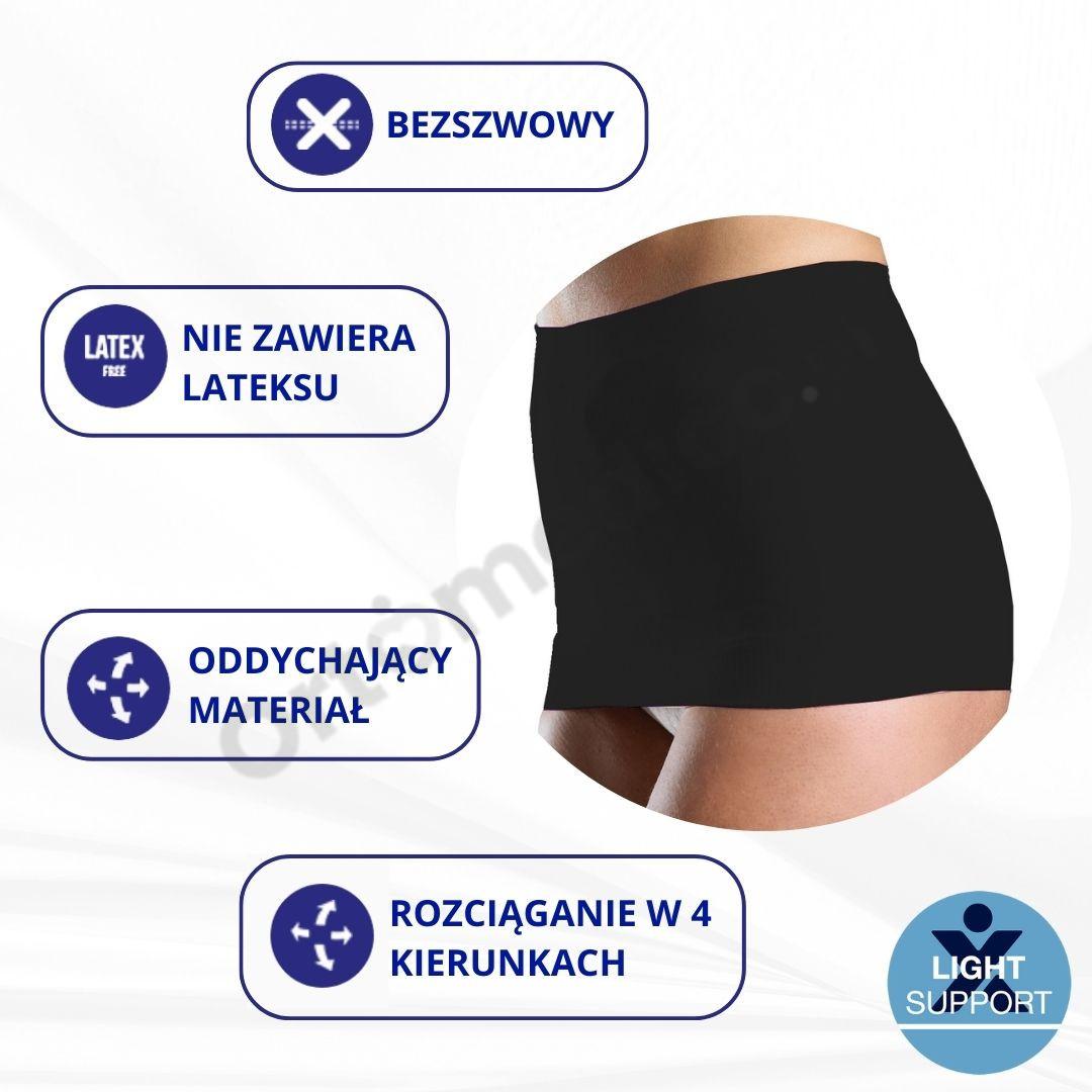 • Doskonałe dopasowanie – wysokość pasa wynosi 22 cm, ale dzięki elastyczności może rozciągać się nawet do 42-44 cm, co zwiększa komfort noszenia.