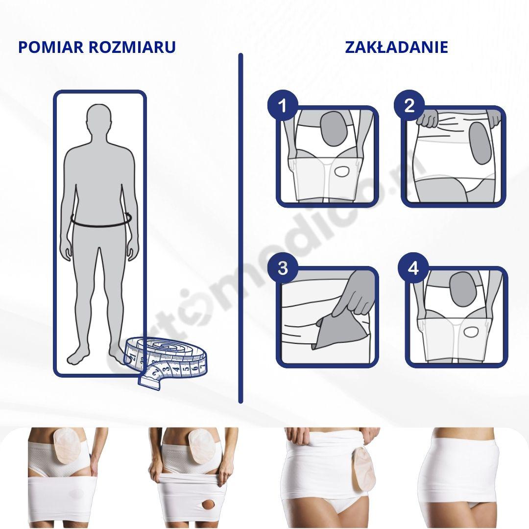 - Stabilizacja i podtrzymanie worka stomijnego w codziennym użytkowaniu.