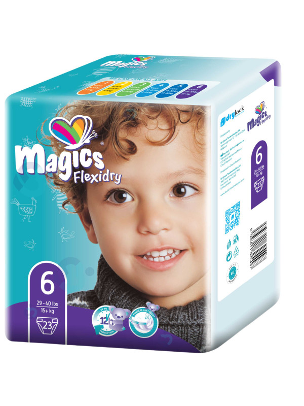 Pieluchomajtki Magics Flexidry XL a23 to nowoczesne rozwiązanie dla dzieci z nietrzymaniem moczu, ważących od 15 kg wzwyż. Dzięki innowacyjnej technologii Drylock zapewniają wysoką chłonność przy zachowaniu wyjątkowej lekkości i cienkości, co przekłada się na wygodę użytkowania zarówno w dzień, jak i w nocy. To idealny wybór dla aktywnych dzieci oraz rodziców, którzy cenią komfort, suchość i bezpieczeństwo
