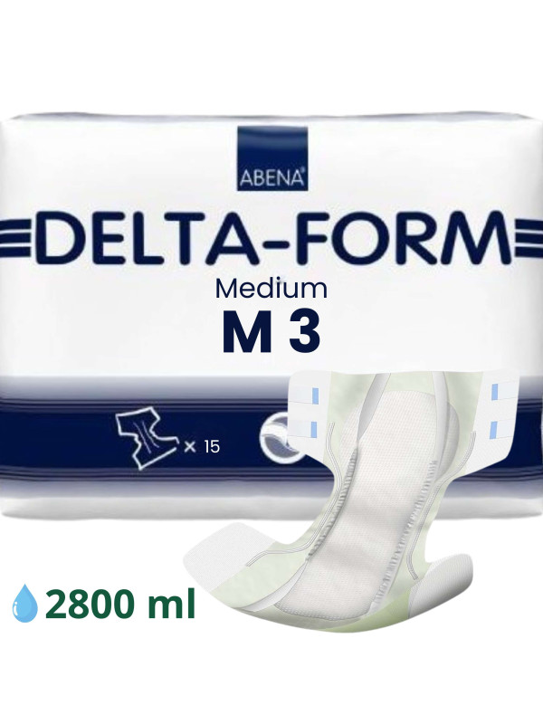 Model Delta-Form 3 to środkowy poziom chłonności z serii Delta-Form, który sprawdzi się zarówno u osób aktywnych, jak i u pacjentów leżących, wymagających długotrwałej ochrony w ciągu dnia lub nocy.