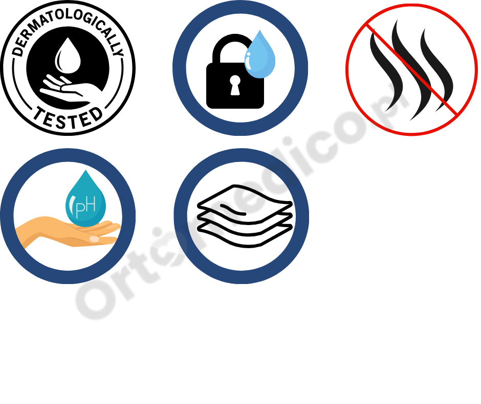 • Pacjentów z wrażliwą skórą: Oddychające materiały, testy dermatologiczne i technologia SkinGuard® chronią skórę przed odparzeniami, podrażnieniami oraz alergiami. To szczególnie ważne dla osób, których skóra jest delikatna z powodu wieku, schorzeń lub długotrwałego kontaktu z wilgocią.