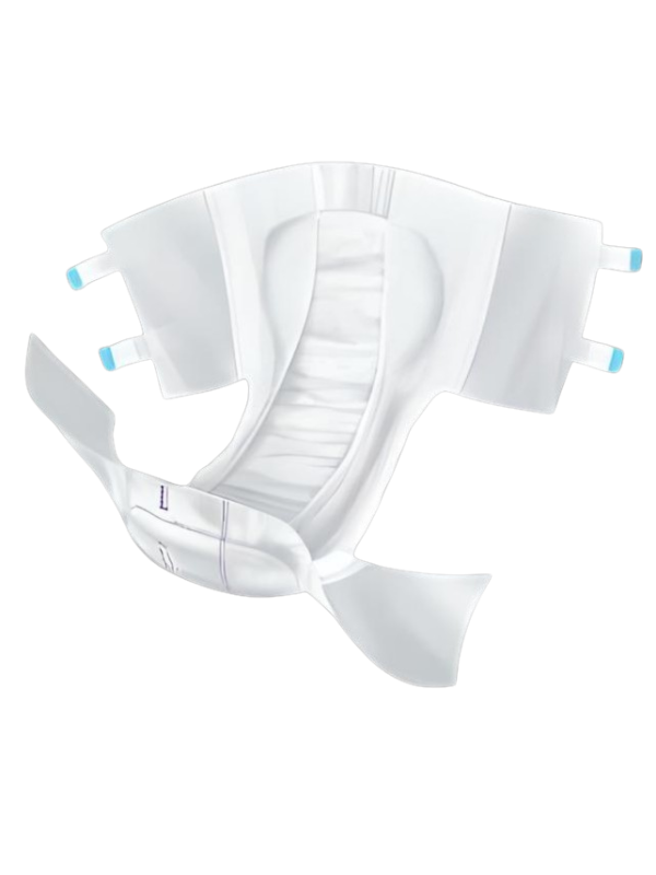 • 4 elastyczne przylepcorzepy (po 2 z każdej strony) umożliwiają wielokrotne zapinanie i odpinanie pieluchomajtek, co ułatwia ich zakładanie, nawet w pozycji leżącej.