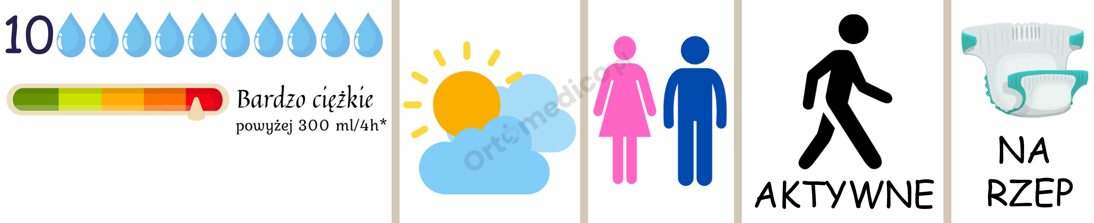• Osób z bardzo ciężkim nietrzymaniem moczu lub stolca: Produkt skutecznie zabezpiecza przed przeciekaniem, neutralizuje zapachy i zapewnia poczucie pewności w każdej sytuacji, niezależnie od poziomu nietrzymania moczu.