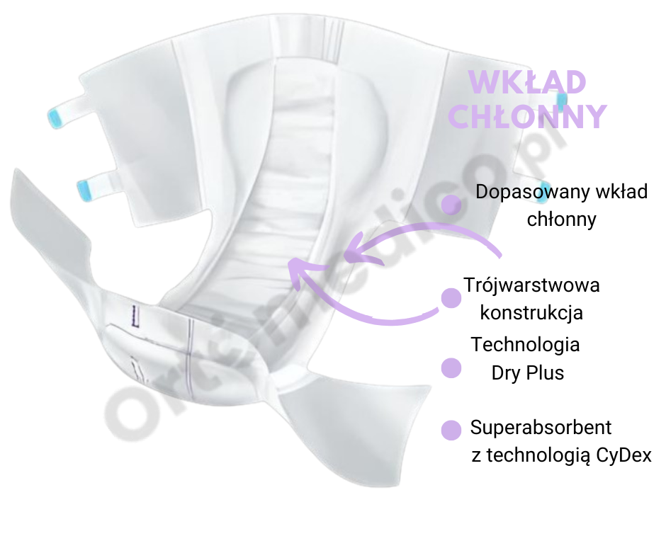 • Zewnętrzna warstwa pieluchomajtek w kolorze białym gwarantuje dyskretny wygląd.