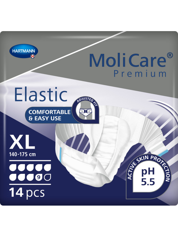 MoliCare Premium Elastic o chłonności 9 kropel to najbardziej zaawansowany produkt zaprojektowany z myślą o osobach z bardzo ciężkim i ekstremalnym nietrzymaniem moczu. Doskonale sprawdzają się w szczególnie wymagających sytuacjach, takich jak opieka nad pacjentami leżącymi, zastosowanie nocne oraz intensywne wsparcie w ciągu dnia. Dzięki wyjątkowej chłonności, doskonałemu dopasowaniu oraz ochronie skóry, pieluchomajtki te gwarantują najwyższy poziom komfortu i bezpieczeństwa użytkownikom oraz łatwość obsługi opiekunom.