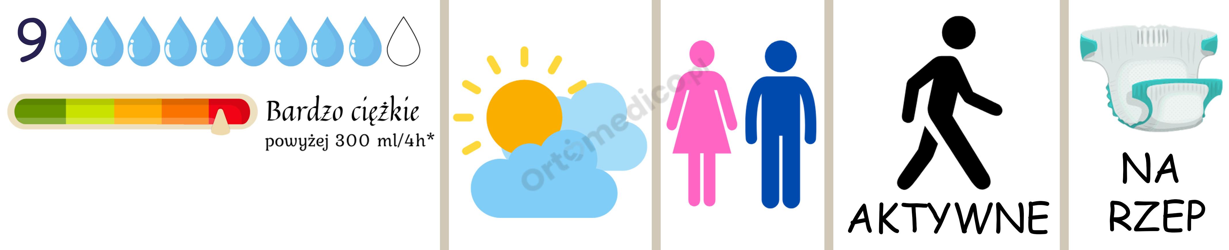 - Odpowiednie przy ekstremalnym nietrzymaniu moczu, zapewniając maksymalną ochronę nawet w przypadku bardzo dużej ilości płynów.