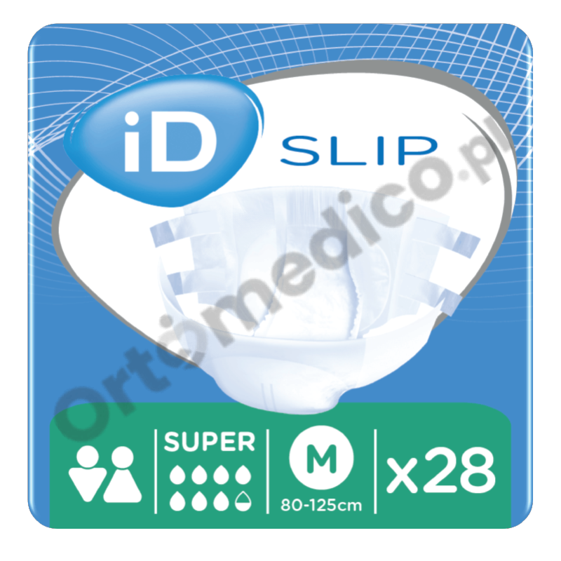 iD Slip to wysokiej jakości pieluchy przeznaczone dla osób z ciężkim stopniem nietrzymania moczu oraz przy inkontynencji kałowej, które zapewniają użytkownikowi ochronę przed wyciekiem i optymalny komfort. Są szczególnie polecane osobom o ograniczonej sprawności ruchowej lub przykutym do łóżka. Chłonność jaką posiada ta pielucha to 7,5/8 kropelek.