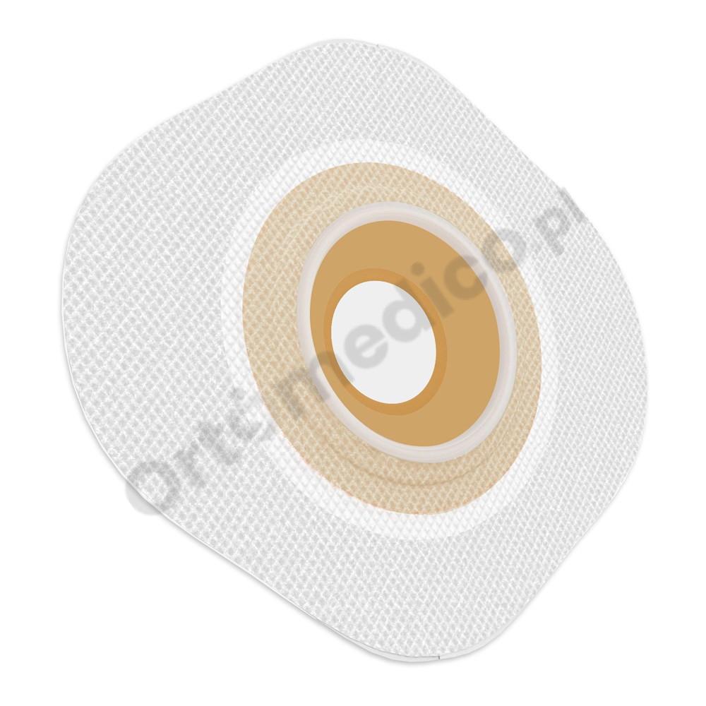 • Płytka wykonana jest z materiału durahesive, przy kontakcie z wilgotną wydzieliną puchnie tworząc ochronny kołnierz, idealnie przylegający do stomii.