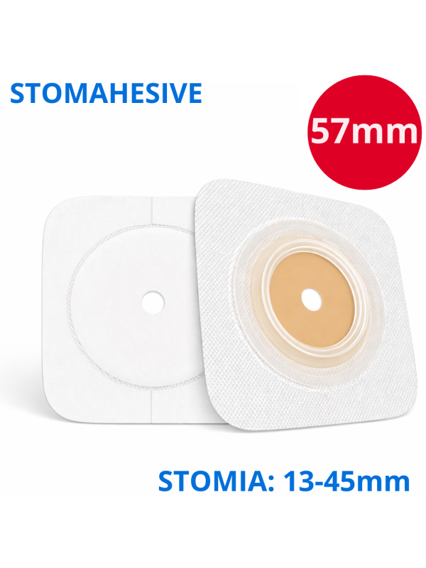 Centralna część płytki wykonana z materiału Stomahesive® obejmuje skórę najbliżej stomii, tworząc okrągłą, dobrze przylegającą powierzchnię. Pozostała część płytki składa się z cienkiej, elastycznej fizeliny, która dodatkowo zwiększa komfort użytkowania, umożliwia lepsze dopasowanie i zapewnia większe poczucie dyskrecji.