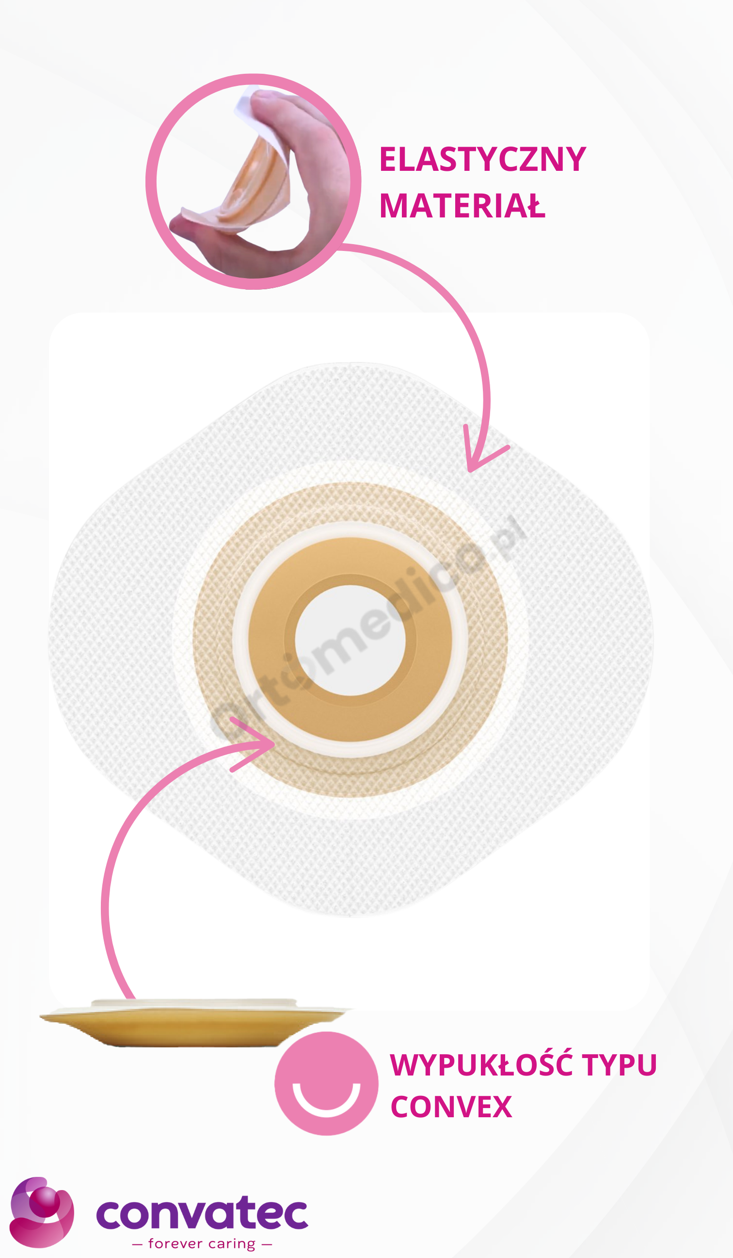 • Możliwość wyboru płytki o wypukłym przylepcu Convex, idealnej do stomii wklęsłych oraz płaskich.