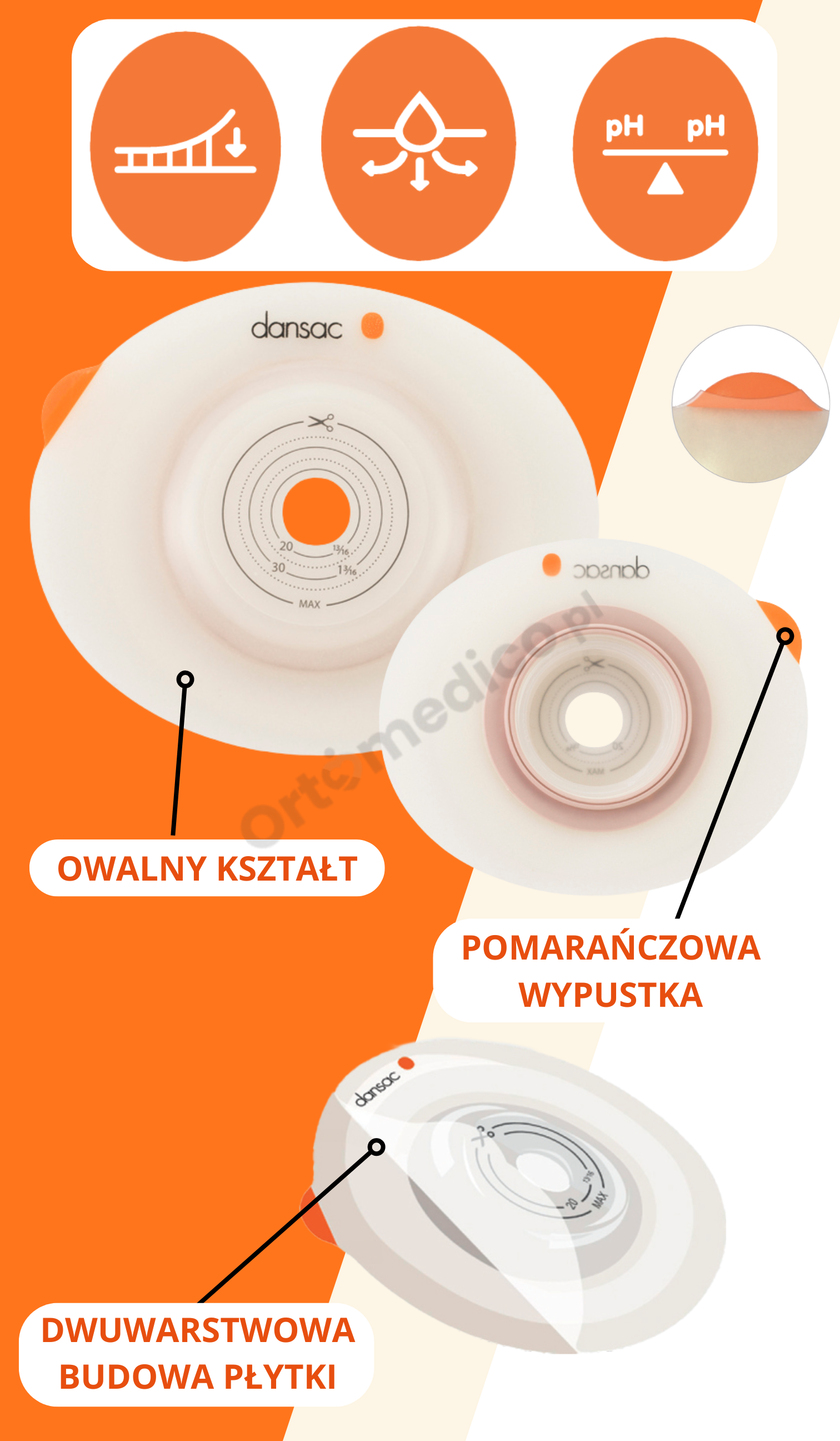Dzięki delikatnemu, ale skutecznemu naciskowi płytka pomaga unosić stomię i kierować ją do wnętrza worka, co zwiększa szczelność i zapobiega przeciekom – nawet przy trudnych kształtach stomii.