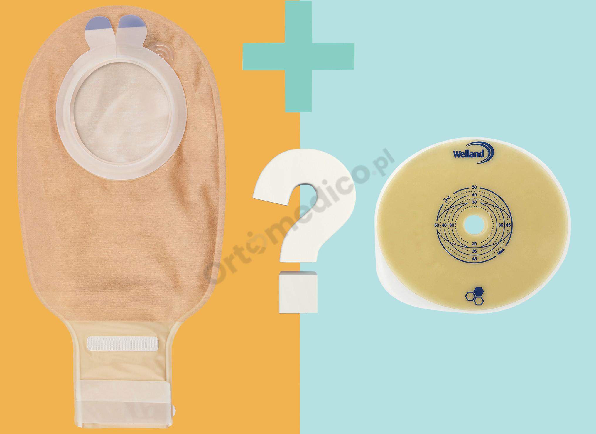 a) Płytki stomijnej – przyklejanej do skóry, zapewniającej trwałość i komfort.