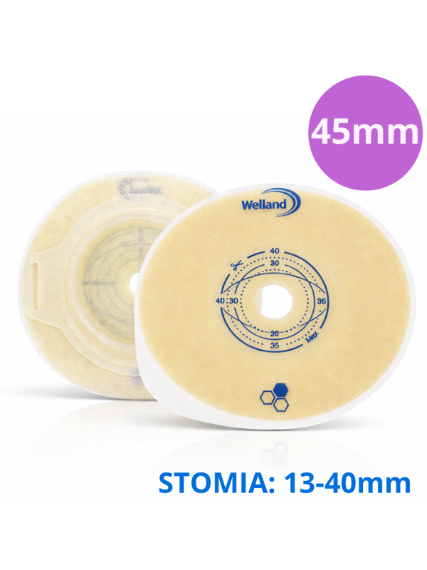 Płytka Stomijna Aurum 2 45/13-40mm to innowacyjne rozwiązanie stworzone przez Welland Medical, które łączy zaawansowaną technologię ochrony stomijnej z naturalnymi właściwościami regeneracyjnymi certyfikowanego miodu Manuka. Dzięki zastosowaniu hydrokoloidów Hyperflex® oraz unikalnych funkcji, płytka zapewnia skuteczną ochronę skóry okołostomijnej, maksymalny komfort i bezpieczeństwo użytkowania.