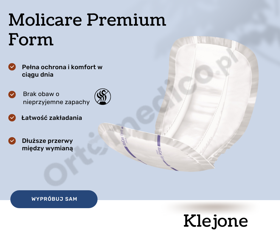 Pieluchy anatomiczne MoliCare® Premium Form 8 kropli – ochrona na ciężkie i bardzo ciężkie nietrzymanie moczu