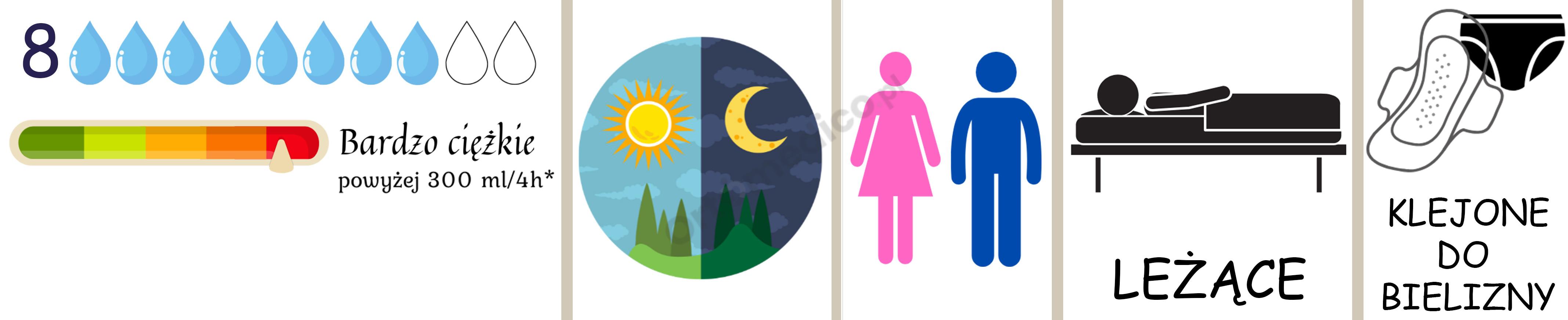 - Najwyższy poziom chłonności: Idealne do stosowania w nocy i w ciężkich przypadkach w ciągu dnia.