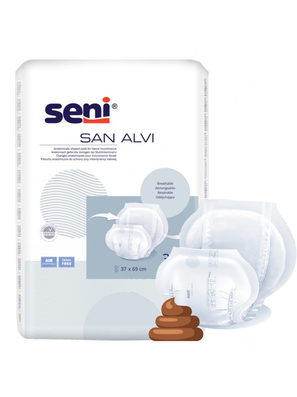 Pieluchy anatomiczne Seni San Alvi przeznaczone są dla osób z inkontynencją kałową. Przeznaczone zarówno dla osób aktywnych jak i dla tych o ograniczonej mobilności.