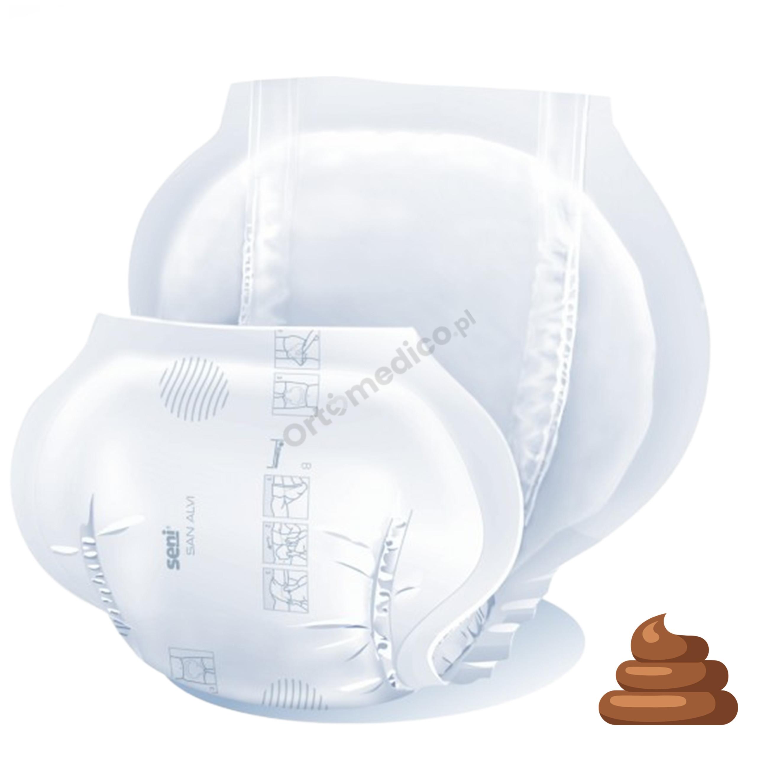 Uwaga: Seni San Alvi nie posiadają wkładu chłonnego, co oznacza, że produkt nie jest przeznaczony do wchłaniania luźnego stolca ani moczu.