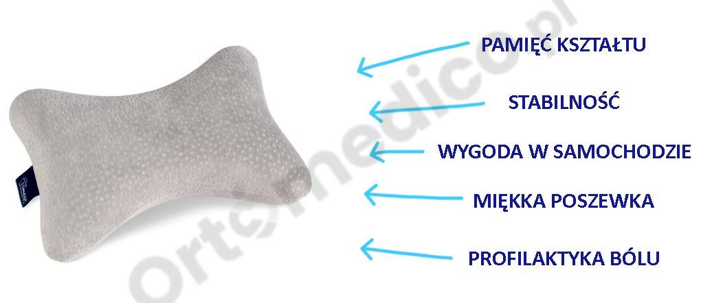 Wskazania: Potrzeba stabilnego podparcia głowy i szyi podczas jazdy samochodem. Dolegliwości bólowe w obrębie karku i odcinka szyjnego kręgosłupa. Napięcie mięśni szyi związane z długotrwałą pozycją siedzącą