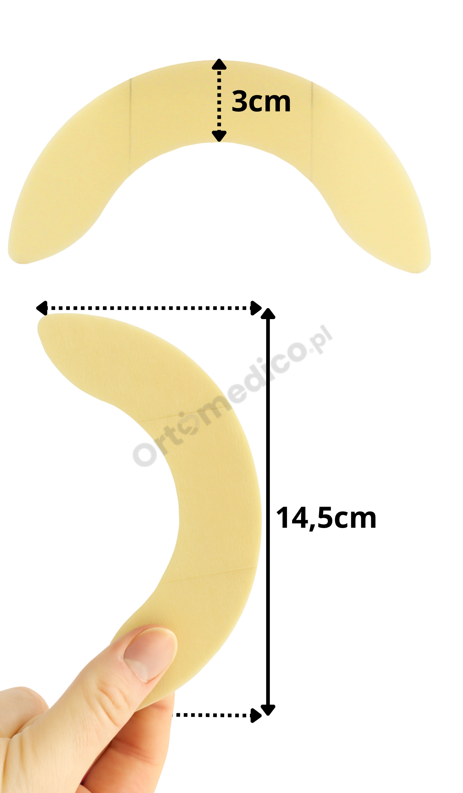 Unikalny kształt – zaokrąglona konstrukcja ułatwia aplikację i dopasowanie półpierścienia do przylepca worka stomijnego lub płytki stomijnej, zwiększając bezpieczeństwo użytkowania.