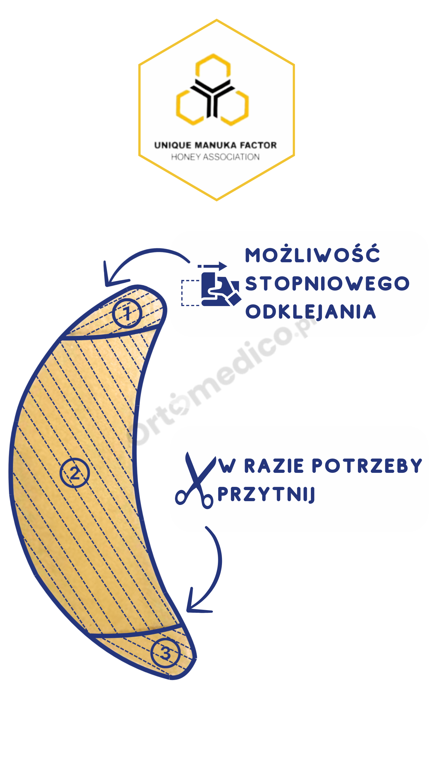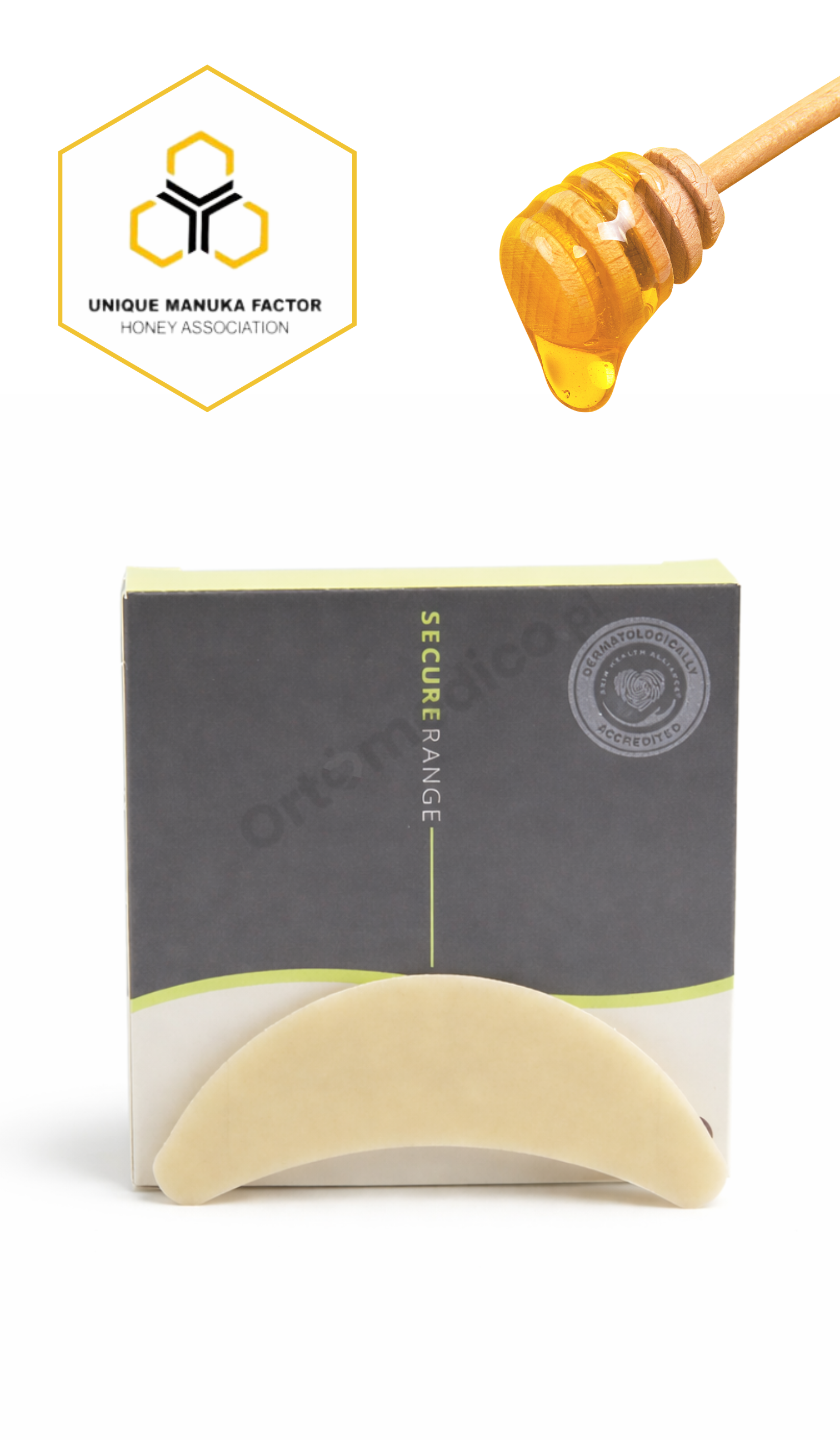 - Hydrokoloidowy półpierścień z dodatkiem miodu Manuka to idealne rozwiązanie dla osób o delikatnej i wrażliwej skórze.