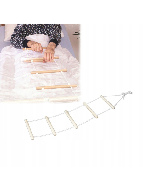 Drabinka rehabilitacyjna 5-szczeblowa HALCAMP jest wyrobem medycznym przeznaczonym do wspomagania osób o ograniczonej sprawności fizycznej w przejściu z pozycji leżącej do pozycji siedzącej w łóżku.