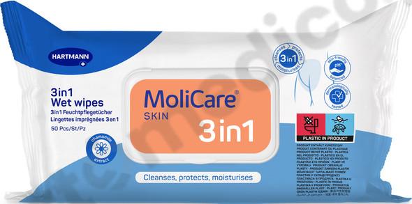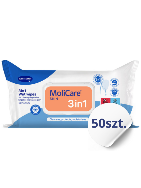 MoliCare Skin Chusteczki Nawilżane 3w1 50 szt. Do Pielęgnacji Skóry Osób Leżących i Nietrzymających Moczu