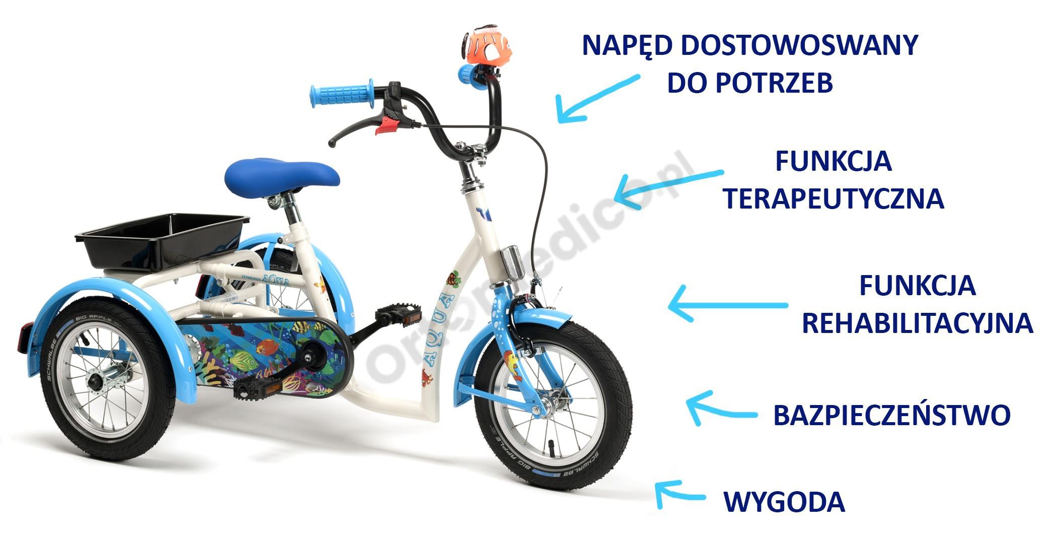 Rower rehabilitacyjny trójkołowy AQUA Vermeiren dla dziewczynek w wieku 3-7 lat