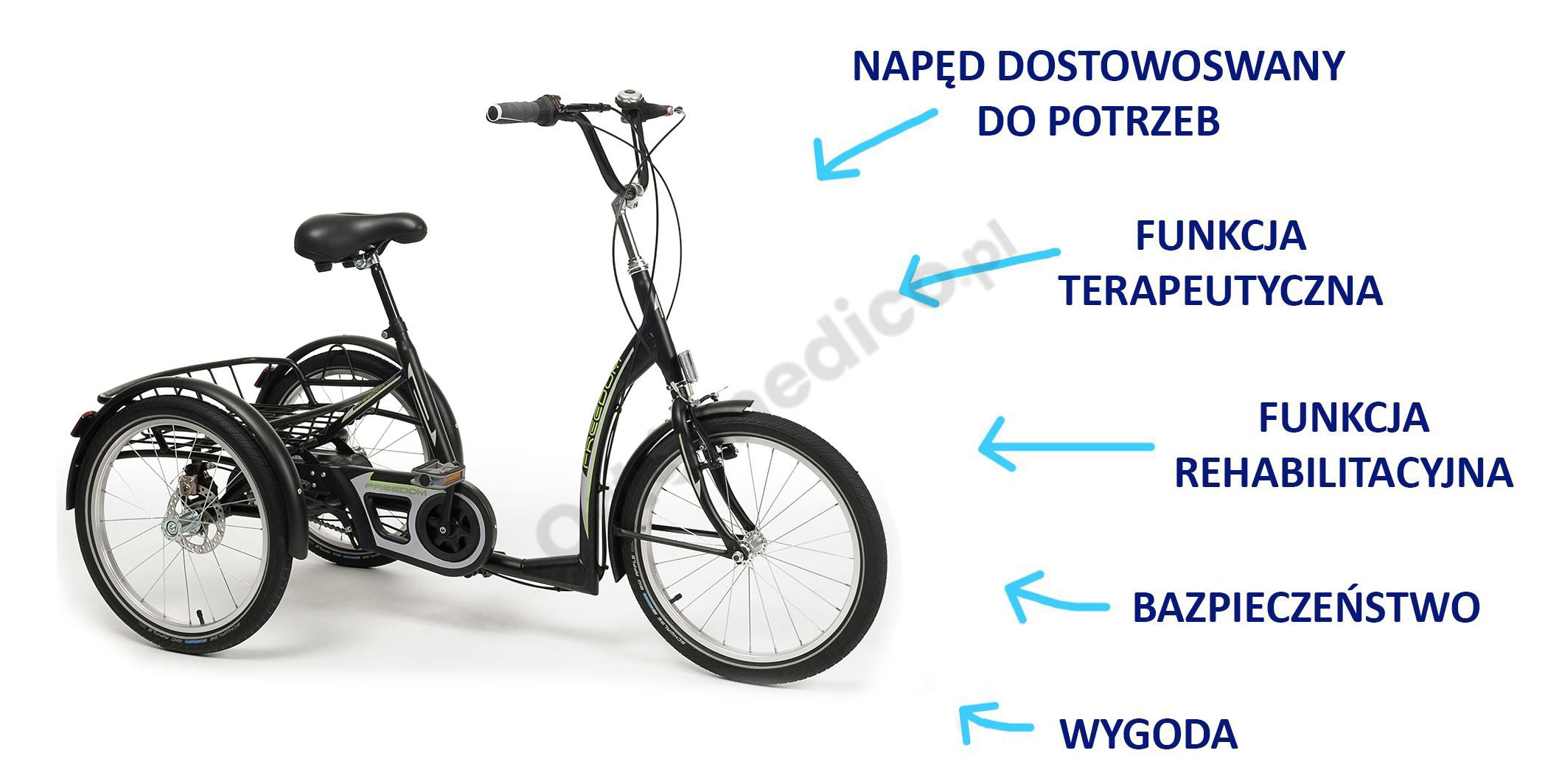 Rower rehabilitacyjny trójkołowy FREEDOM Vermeiren dla młodzieży i dorosłych zalety produktu: