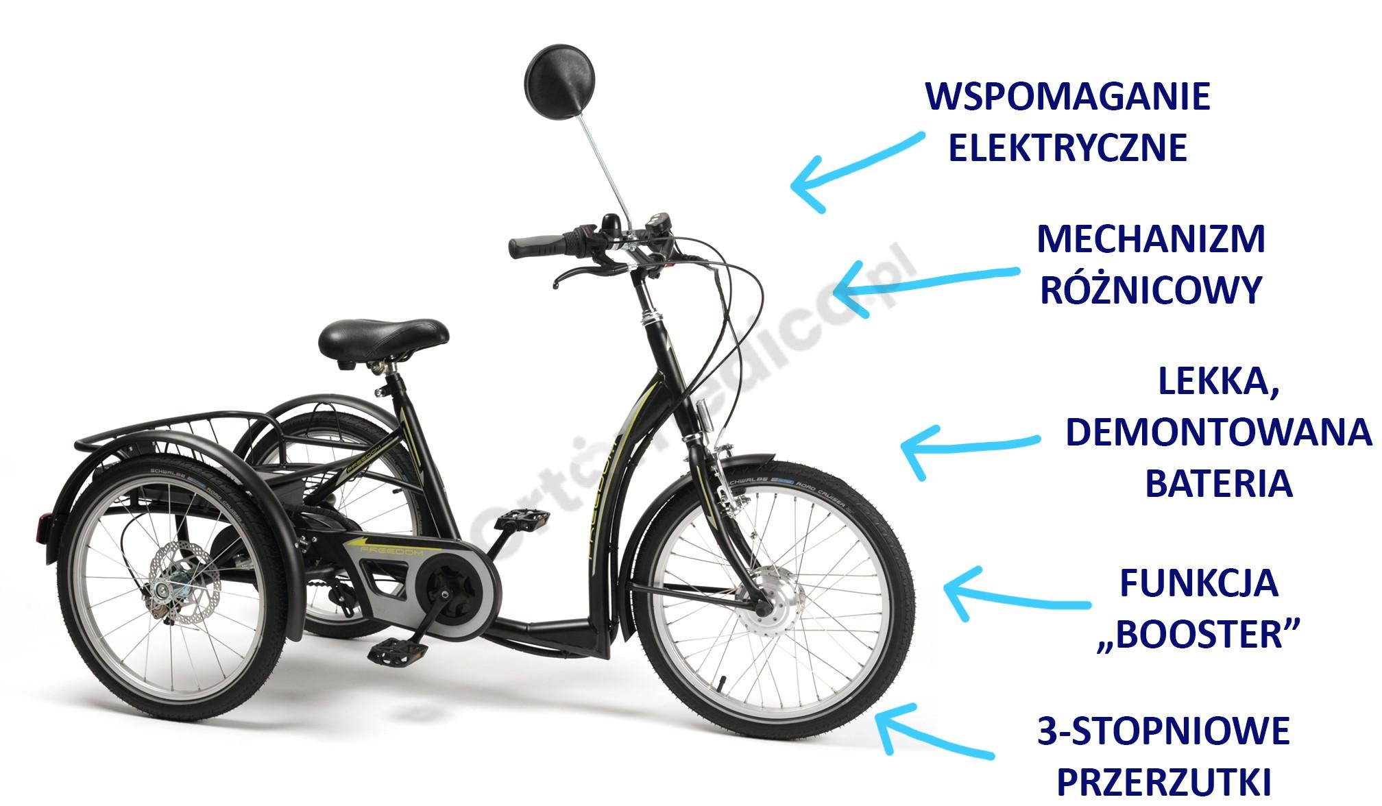 FREEDOM-E Elektryczny Rower Rehabilitacyjny Trójkołowy  dla Młodzieży i Dorosłych Vermeiren zalety produktu: