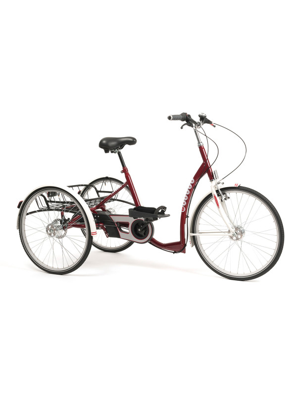 Nisko zawieszona rama ułatwia wsiadanie i zsiadanie z roweru, co jest kluczowe dla osób z ograniczeniami ruchowymi. Konstrukcja trójkołowa zapewnia pełną stabilność podczas jazdy i postoju.