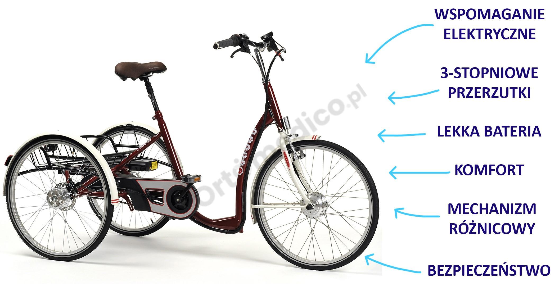 Elektryczny Trójkołowy Rower Rehabilitacyjny dla Dorosłych Lagoone-E Vermeiren zalety produktu:
