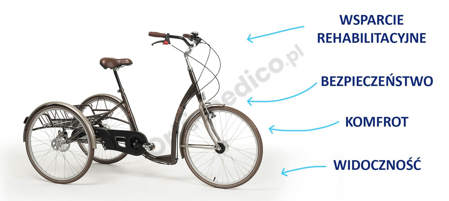 Vintage Rower Rehabilitacyjny Trójkołowy dla Dorosłych Vermeiren zalety produktu: