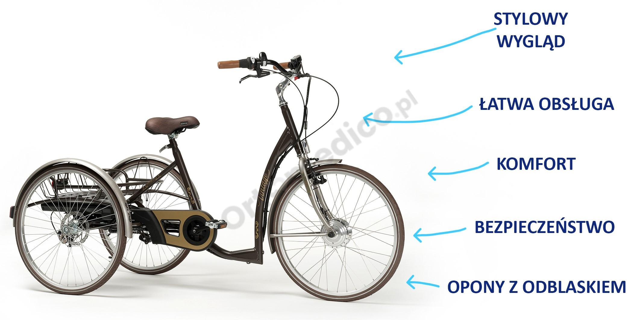 Elektryczny Rower Rehabilitacyjny Trójkołowy Vintage-E Vermeiren zalety produktu: