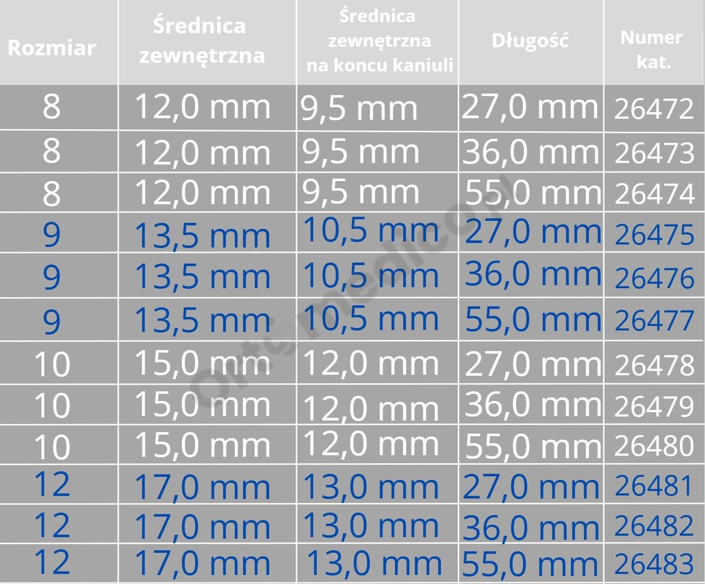 ▪️ Dostępna w różnych rozmiarach (np. 10/55, 8/55, 9/36, gdzie pierwsza liczba oznacza rozmiar wewnętrzny, a druga długość).