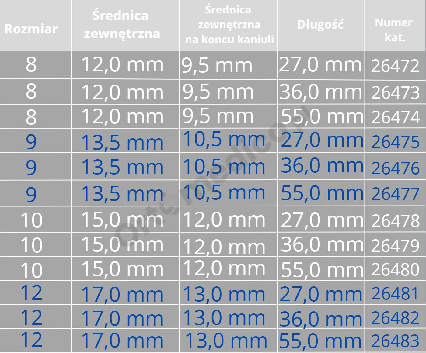 ▪️ Dostępna w różnych rozmiarach (np. 10/55, 8/55, 9/36, gdzie pierwsza liczba oznacza rozmiar wewnętrzny, a druga długość).