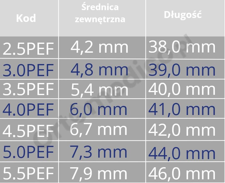 Tabela rozmiarów rurki tracheostomijnej: