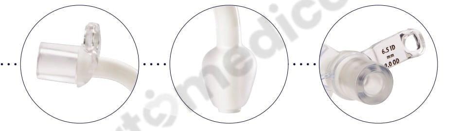 ▪️ Mankiet niskociśnieniowy (Cuff): Cienkościenny i delikatny mankiet zapewnia szczelność w tchawicy, co jest kluczowe przy wentylacji mechanicznej oraz ochronie przed aspiracją (zachłyśnięciem), jednocześnie minimalizując ryzyko urazów błony śluzowej.