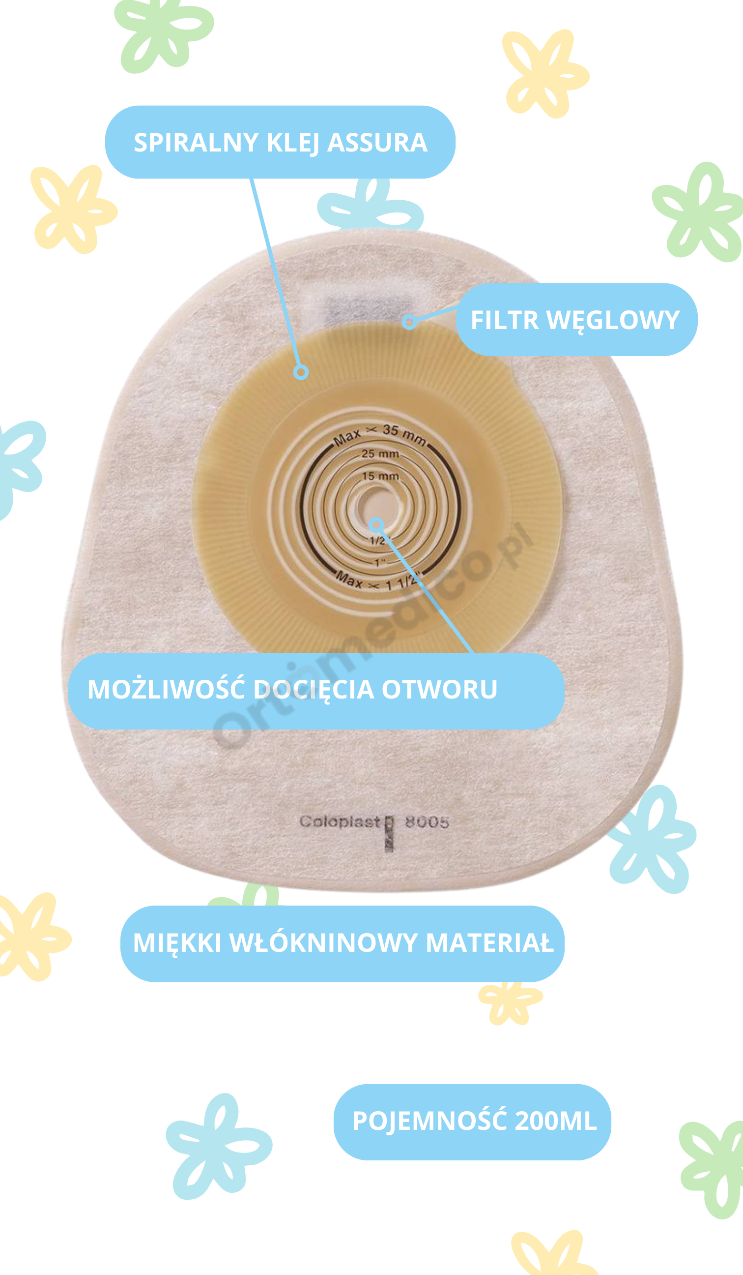 - Stosowanie wyłącznie z kosmetykami i akcesoriami stomijnymi przeznaczonymi do pielęgnacji skóry wokół stomii.