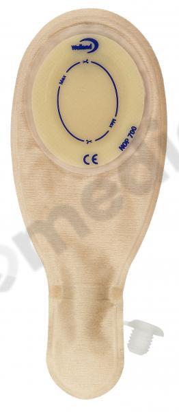 - System jednoczęściowy samoprzylepny: Worek posiada przezroczystą warstwę zewnętrzną oraz miękką fizelinę od strony ciała, która zapewnia delikatność dla skóry i minimalizuje ryzyko podrażnień. Otwór można samodzielnie dociąć w zakresie 0-40-30 mm, co pozwala na precyzyjne dopasowanie do kształtu stomii i ciała pacjenta.