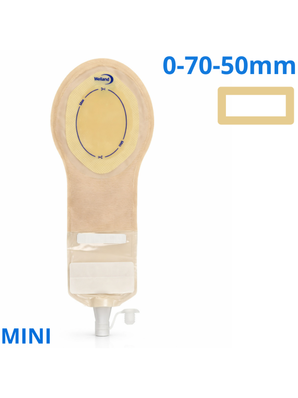 XSOP500 Worek Pediatryczny Jednoczęściowy Pedriatic Pouch Fistula Bag, Drenażowy 0-70-50 Mini Z Filtrem Beż z Okienkiem Welland