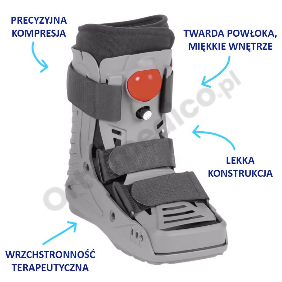- Dla użytkowników poszukujących lekkiej, oddychającej ortezy typu Air Walker, która redukuje ból i obrzęk oraz wspiera szybki powrót do sprawności