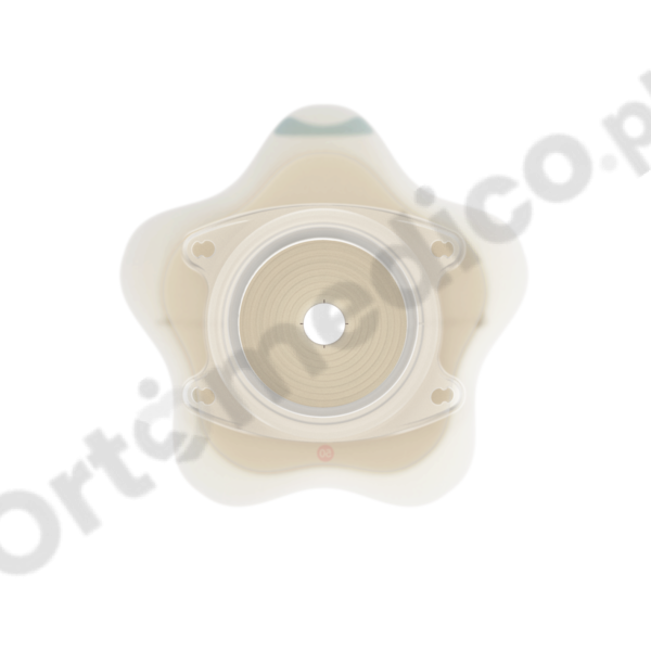 Oba elementy łączy pierścień z zatrzaskiem, który zapewnia stabilne i dyskretne połączenie. Dzięki temu rozwiązaniu płytka stomijna może pozostawać na skórze nawet przez kilka dni, a codziennej wymianie podlega jedynie worek stomijny, co zwiększa wygodę i komfort użytkowania.