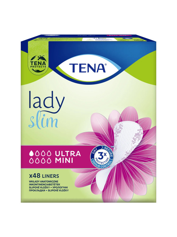 Wkładki urologiczne TENA Lady Slim Ultra Mini przeznaczone są dla kobiet z kropelkowym nietrzymaniem moczu podczas aktywności fizycznej, przy kaszlu lub kichaniu. Przeznaczone są dla kobiet prowadzących aktywny tryb życia, mobilnych. Chłonność tych wkładek to 1/8 kropelek, a długość wynosi 19,2 cm.