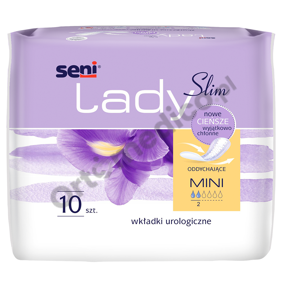 Wkładki urologiczne Seni Lady Slim Mini przeznaczone są dla kobiet z kropelkowym i lekkim stopniem nietrzymania moczu. Przeznaczone dla kobiet prowadzących aktywny tryb życia, mobilnych. Chłonność jaką posiadają te wkładki to 2/6 kropelek i wymiar 9,5 x 22,5 cm.