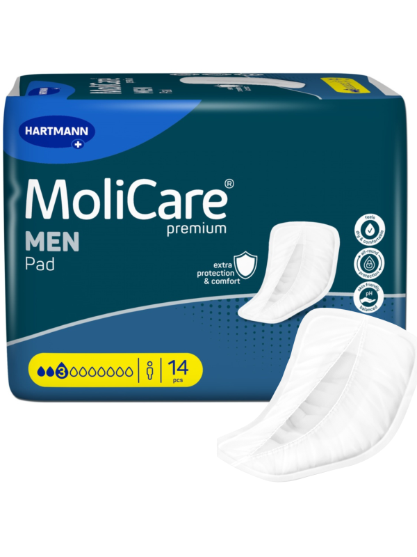 MoliCare® Premium Men Pad 3.0 to wkładki chłonne stworzone z myślą o aktywnych mężczyznach z lekkim nietrzymaniem moczu. Zapewniają one niezawodną ochronę, komfort i dyskrecję podczas codziennych aktywności w ciągu dnia. Dzięki zaawansowanej budowie wkładki doskonale dopasowują się do męskiej anatomii, skutecznie pochłaniając wilgoć i neutralizując zapachy.
